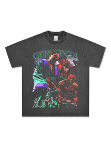 Mike Tyson 100% algodón lavado con ácido camisas casuales bóxer de gran tamaño para hombre Camiseta gruesa de manga corta precio de fábrica logotipo personalizado muestra gratis y entrega en 7 días